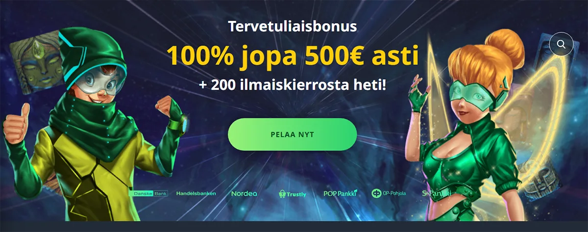 Yhteensä tervetuliaisbonus voi olla arvoltaan jopa 1000 euroa plus ilmaiskierrokset. Minimitalletus bonuksen aktivoimiseksi on vain 10 euroa.