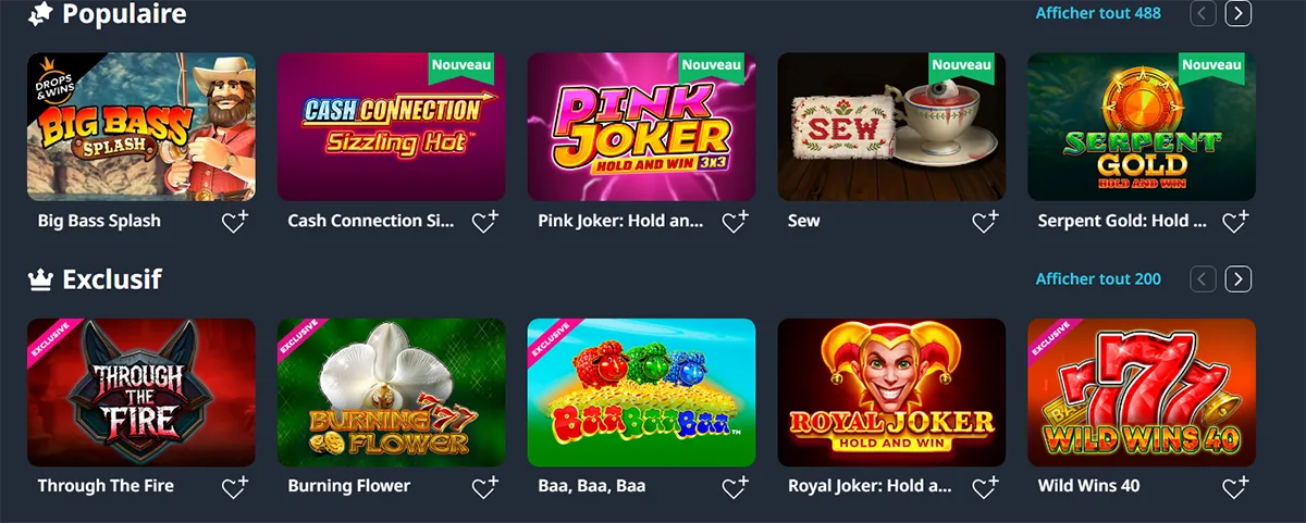 Les jeux exclusifs développés spécialement pour notre plateforme offrent des fonctionnalités uniques. Nous collaborons avec Hacksaw Gaming et Nolimit City pour proposer des mécaniques de jeu innovantes.