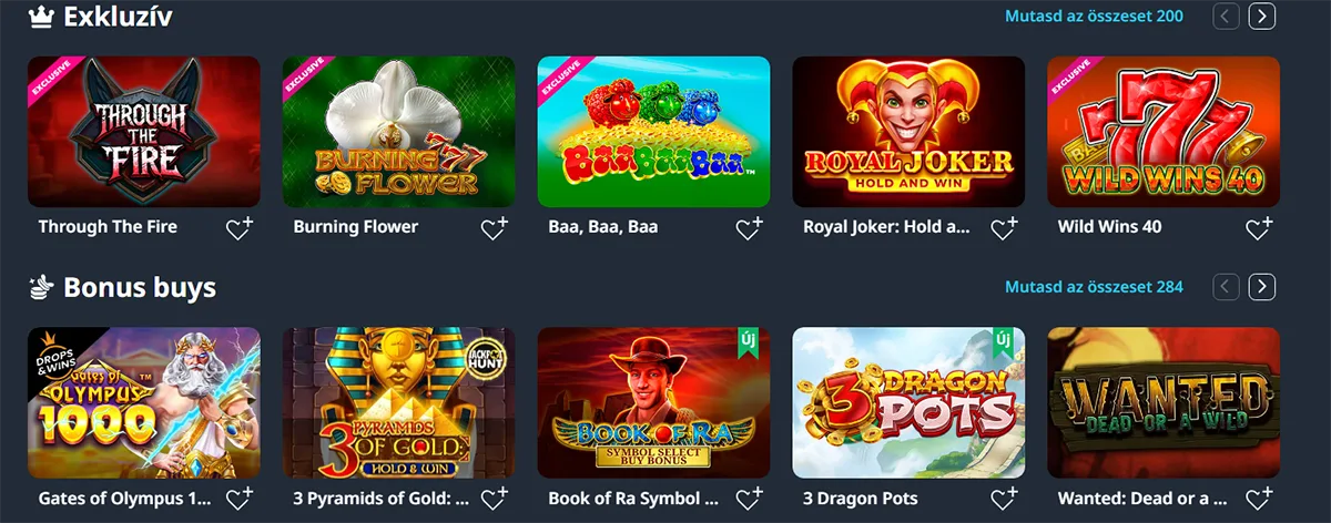 Red Tiger Games és Relax Gaming exkluzív címei csak a partnerkaszinókban érhetők el. Ezek különleges funkciókat és egyedi témákat kínálnak.