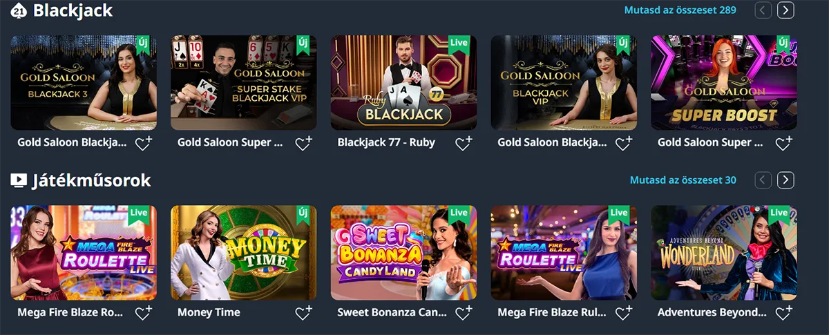 Az élő kaszinó részlegünk Evolution Gaming technológiájával működik. Professzionális élő kereskedők vezetik a játékokat valós időben.
